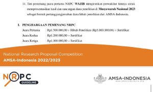 National Research Proposal Competition (NRPC) merupakan salah satu program kerja Secretary of Research AMSA-Indonesia 2022/2023 berupa kompetisi proposal penelitian multisenter pada tingkat nasional yang bertujuan